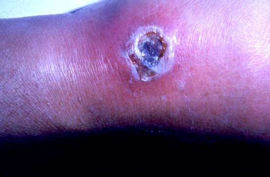 皮肤炭疽感染所引起的病灶(图片来自于phil.cdc.gov美国CDC公共卫生图片素材库)