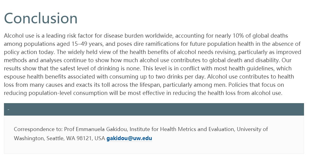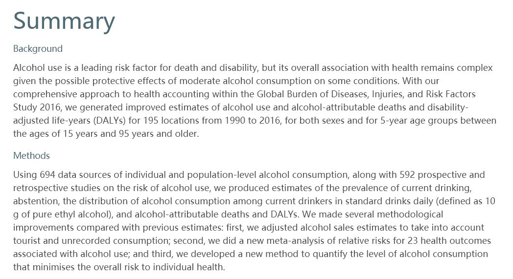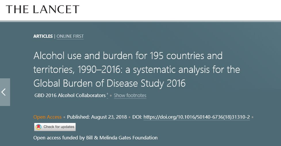 日前,柳叶刀(The Lancet)刊登了一篇饮酒负担相关的论文,称: