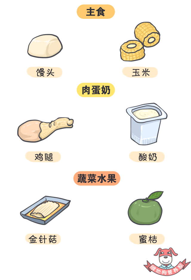 如果以上食谱吃腻了,狗狗传授给你搭配原则,以后你也可以自己变花样来吃,同样的健康、经济