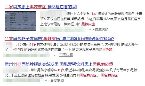 据明明妈妈反映,原来是明明暑假期间很少运动,喜欢吃甜食,还喜欢喝碳酸饮料,每天几乎拿碳酸饮料当水喝。从医生的分析来看,明明本身就身体肥胖,平时又很少运动,尤其最近半年大量饮用碳酸饮料,是导致患上“黑色棘皮症”的原因之一。