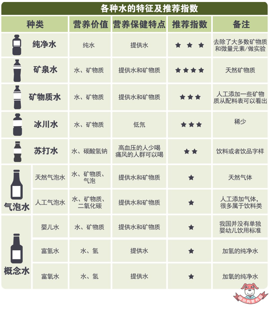 虽然现在水的名字令人眼花缭乱,但其实主要分为5大类: