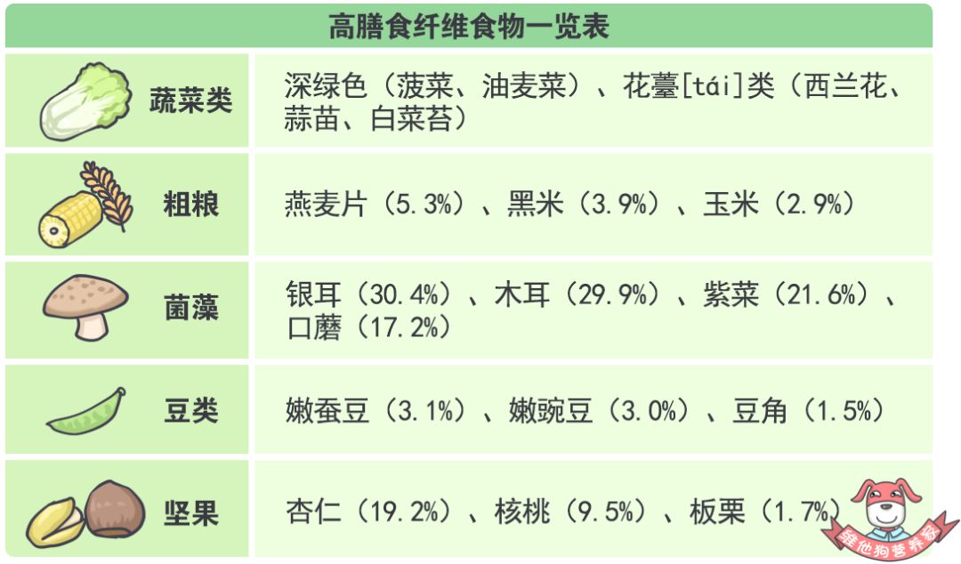 这里狗狗想着重说一下蔬菜这个类别,一般来说,野生蔬菜的膳食纤维含量比栽培蔬菜的要高,深绿色蔬菜比浅色蔬菜的高。