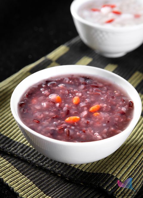 人们常说的“八宝粥”就是一种。八宝粥一般是以梗米和糯米为主料再添加豆类、干果,形式多样。在“八宝粥”中,豆类富含赖氨酸,弥补了谷类中所缺的赖氨酸,各种坚果富含人体必需的脂肪酸、多种维生素及微量元素,混合谷物、豆类、干果等的粥不仅美味可口,更加营养丰富。