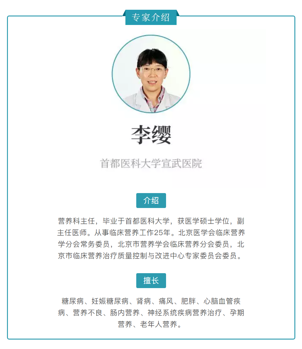 文字:首都医科大学宣武医院营养科主任、副主任医师李缨