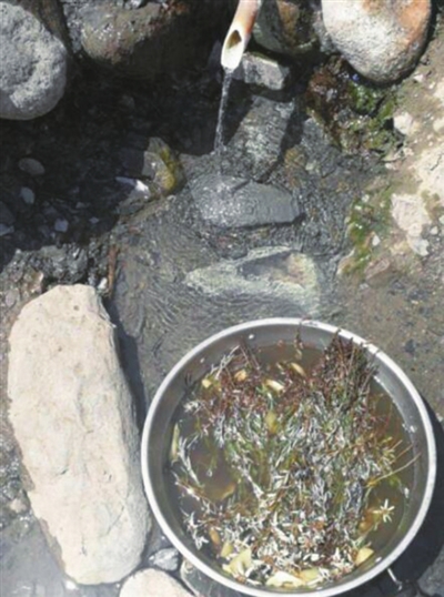 在水池旁的一个小帐篷里记者见到来自贵德新街乡的马先生,他说他患有风湿关节炎经常到温泉来泡脚,症状有所缓解。记者在附近还看到许多慕名前来治病的群众。阿尼直亥山独特的自然风光,神奇的药泉疗法,吸引着人们纷至沓来。