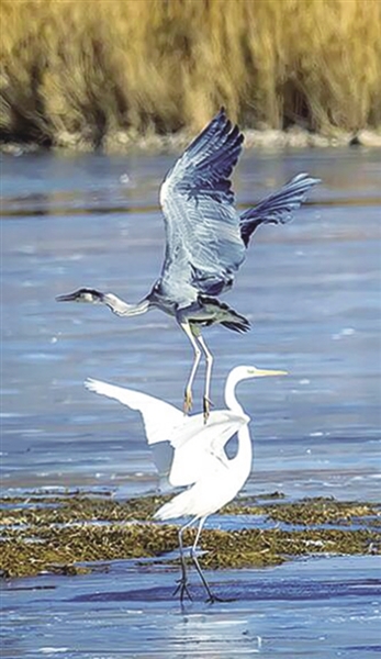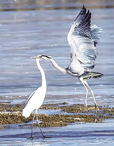 格尔木由柴达木盆地中南部和唐古拉山地区两块互不相连的区域组成,市区位于柴达木盆地中南部格尔木河冲积平原上,平均海拔2780米,格尔木属高原大陆性气候。这里有丰富的水源,分布着面积不等的高原湿地,湿地周边独特的自然生态以及丰盛的水草为苍鹭提供了良好的生存和栖息环境。近年来,格尔木不断加大对生态的保护力度,使周边湿地的生态环境得到了很好的恢复与改善,为生活在湿地周边的野生鸟类种群的繁衍生息,发挥了积极的作用。随着环境的改善“良禽择木而栖,鸟类择湿地而生”的现象,成为高原湿地难得一见的景观。它们或追逐嬉戏,或展翅翱翔又或是在一旁静等守株待兔与野鸭抢食美味的鱼虾,每一个定格的画面都呈现出大自然与生物和谐共生的祥和景象。图/文 祝贵福 刘海英