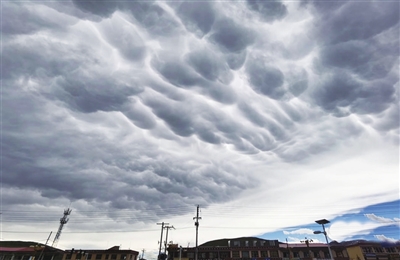 青海省果洛藏族自治州甘德县上空出现少见乳状云。 图片来源:中国天气