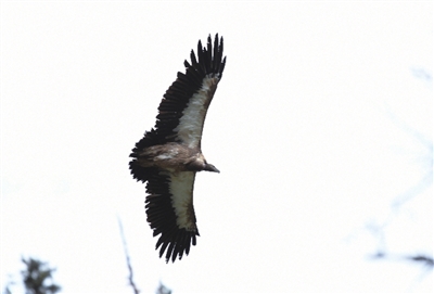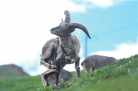 图为在囊谦县吉尼赛乡河谷的山坡上一只岩羊在嬉戏,一只高山兀鹫在上空飞翔。据新华社