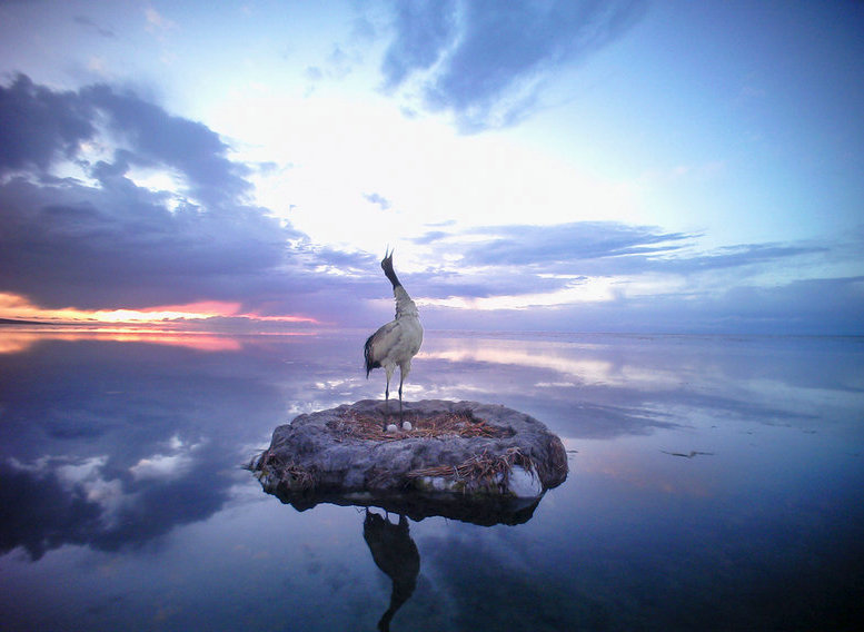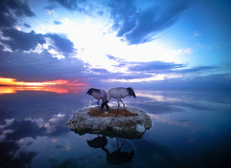 这是怎样的一幅画面啊,连日来的辛劳与焦虑,全然消失。眼前的这一切,不正是我们上下求索、苦苦追寻的吗?仙鹤,仙鹤,我的眼前突然闪现出曾在梦中才有的意境。难道是有天人引导,还是黑颈鹤灵魂的自然显现?看到眼前的这一幕,人间的多少烦恼纷争、是非曲直,全部都消释得无影无踪。