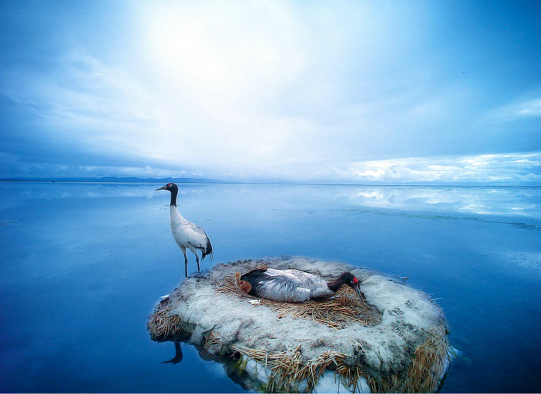 黑颈鹤是中国特有的珍稀禽类,世界上唯一一种高原鹤类。无论是青海还是甘肃,不管是在四川还是西藏,只要提到黑颈鹤,藏族同胞都会肃然起敬。四川、青海、西藏等地的多位藏族老人告诉我说,黑颈鹤是仙鹤,是他们心中的神鸟。