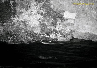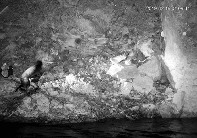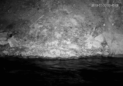 同时,从这段影像中我们可以很清晰地看出,由于受限于流水的干扰,红外相机布设的角度只能朝向陆地,而极为重要的两侧PIR感应也只能关闭,这就导致在很大呈上红外相机的延迟触发和视角局限会导致众多信息的缺失——在看到这段影像之前,我们一直都以为这只是一只水獭……