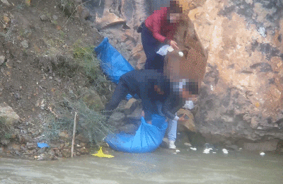 在河边放生的人群