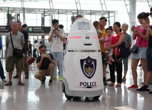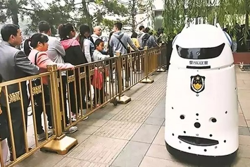 在中国的国庆假期期间,天安门广场附近的国家博物馆就看到了一台协助维持秩序的机器人警察,外观上这个机器人警察圆墩墩的身子更像是一台真空吸尘器,配备了最先进的面部识别软件,除了机身上印制的警徽显得有威慑力之外,机器人的喊话声也十分严厉,提醒游人保持秩序。