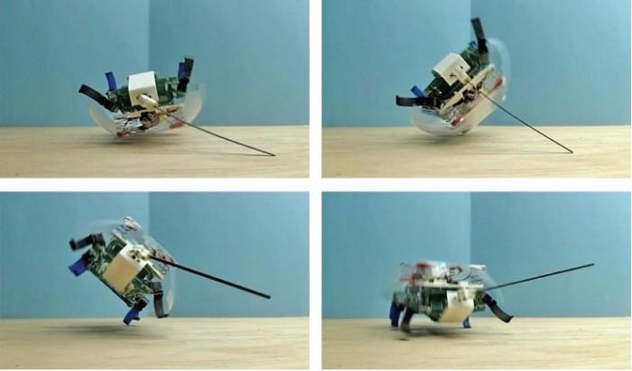 对于动态机器人来说,大多数尾巴都是比较笨重的设备,并具有一定的重量,因为它们的功能依赖于有足够的惯性来影响机器人的身体。而这款蟑螂机器人的尾巴,基本上是一根坚硬的碳纤维棒,它会旋转并推着地面,从而让机器人翻转过来。