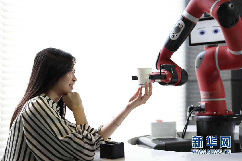 顾客体验AI咖啡厅 (图片来源:新华网)