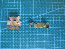 太阳能蟋蟀的驱动控制是由4只三极管构成,用以提供稳定的脉冲电流,它们组成了机器人的“心脏”。制作这类小机器人的技巧就是首先完成核心部分的制作,其他元件将围绕着这个核心环环相扣地进行搭建,这样整体结构就显得紧凑。把4只三极管管脚朝上两两并列,上方是两只PNP型三极管,NPN型三极管在下面。这里使用的三极管是2N3906和2N3904,如果用其他型号的管子替换,需要仔细核对管脚顺序是否与图中一致。
