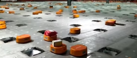 2.中国一家公司通过使用机器人每天分拣超过20万个包裹从而使工人成本降半。并且他们能自己充电,全天候运转。