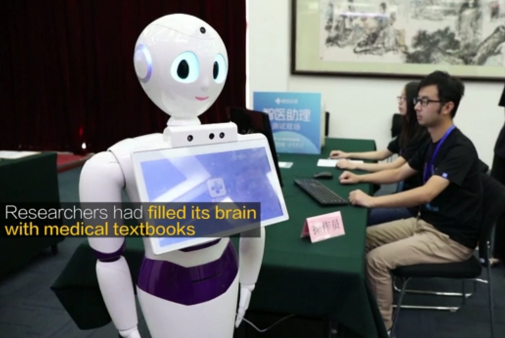 9.2017年11月,“晓医”机器人成为通过中国执业医师考试的第一台人工智能机器人。这台机器人显示出它有学习、推理和判断的能力,不过“晓医”在能够进行独立训练之前还有很长的路要走,目前“晓医”主要帮医生更快地确诊病因和避免一些风险。
