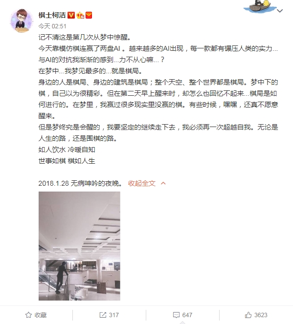 柯洁梦醒发文:梦中才能战胜AI 有时真不愿醒来快科技 2018-01-29 |