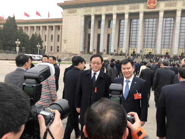 (图为全国人大代表张近东参加十三届全国人大一次会议)