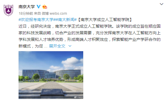 3月6日下午,环球网科技记者从南京大学官方微博了解到,近日,经研究决定,南京大学正式成立人工智能学院。