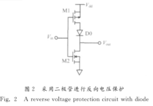 为了解决反向电压问题,通常采用二极管进行保护 ,如图 2 所示。但是,二极管的存在导致器件输出摆幅下降,影响了器件输出驱动能力。同时,二极管的引入也增大了输出导通电阻,影响输出级的瞬态特性。采用 MOS管替代二极管,但为了降低 MOS管导通电阻,采用较大宽长比的MOS管,因此占用了较大的版图面积,影响了芯片的性价比。