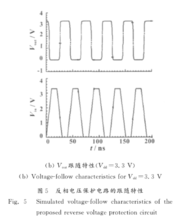 进行比较,选择相对较高的电压为 MP1的衬底电位。此外,正反馈电路响应速度快,能够及时为 MP1~MP3 , MP6提供合理的衬底电位,保证电路具有良好的抗闩锁能力。图4中, MN2~MN4和 MP4~MP7构成栅极电压保护电路。当电源电压为0时,如果