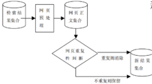 网页为半结构化的信息形式,它与单纯的文本文档并不完全相同。网页中的有效信息主要包括以下几方面的内容:网页标题、网页正文、导航信息、超链接信息、图片声音等多媒体信息等。从以上信息中可以提取出有关网页内容的一些特征。首先对检索结果集中的网页进行预处理,将其余信息屏蔽,获得网页的正文信息,然后用后面介绍的算法对网页正文进行去重处理。即判断是否已经有相同内容的网页在结果集中,若有,则进行删除或合并处理,若没有,则将该网页保留在检索结果集中。网页去重系统主要结构如图1所示。