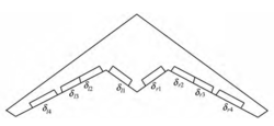 一个舵面对另一个舵面的影响称为交叉耦合效应,常规布局飞机一般具有升降舵、副翼和方向舵3组操纵面,3组操纵面之间交叉耦合效应不大。基于气动布局、隐身设计及安全飞行的考虑,大展弦比飞翼布局飞机一般采用多个操纵面冗余配置的布局方式。多操纵面冗余配置带来了操纵面数量多于需要的操纵舵面和舵面操纵功能不明确的问题。多个舵面冗余布局使交叉耦合效应影响变大,为了提高控制指令的分配精度,在控制分配算法中考虑交叉耦合效应十分必要。