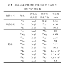 的 N 型半导体。反应堆辐照孔道内中子辐照材料过程中,单晶硅其它同位素及相关结构材料成分如金属靶桶被活化后,产生较强的 γ放射性。活化源项对反应堆堆厅的屏蔽及操作人员的管理造成影响,特别是被废弃的靶桶等结构材料成为放射性的主要废物。NTD 硅转运过程中,单晶硅及靶桶除了有水槽及保存水池通道水屏蔽外,堆厅周围的普通混凝土墙,人员透视窗玻璃以及铁门可以确保单晶硅出堆后辐射屏蔽。通过对反应堆单晶硅辐照系统相关结构材料进行活化剂量计算分析研究可以减少反应堆单晶硅辐照生产及转运的人员的辐照剂量,还能有效评估材料辐照生产任务的辐射屏蔽要求。并且通过活化计算分析来对结构材料的优化可以减少放射性废物的产生。
