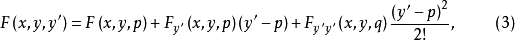 式(6)是勒让德于1786年通过研究二次变分提出来的,称为泛函式(1)的勒让德条件。如果式(6)是严格的不等式,则称为勒让德强条件。勒让德条件也是泛函取得极值的必要条件。泛函的一条极值曲线包含在极值曲线场中的充分条件是必须满足勒让德强条件。