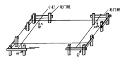 (1)龙门桩可以设置在建筑物四角以及纵横墙轴线的两端拟挖边线以外约1-1.5m(注意土质情况和基础挖掘的深度)处,并且不可妨碍施工,对其要求必须牢固、垂直,不能有随意摇摆、松动的现象,木桩的侧面应与实际的轴线相平行。龙门桩可以选用断面为50mm×50mm方木制成,为了便于向地下楔人,其中一个端部应做成锥状。