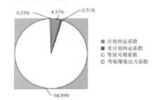 为了分析4个指标之间的互相制约关系,将内蒙古大唐国际托克托发电有限责任公司2004~2011年年均的4个指标绘制饼状图,具体见图。从图可以看出,4个指标中,等效可用系数最大,计划停运系数次之,非计划停运系数和等效降低出力系数很小,因此在和为100%的情况下,减小计划停运系数对等效可用系数的提升空间最大。