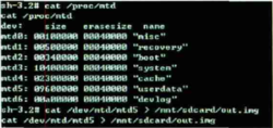 可以使用mount |grep /data获取dd的镜像目标,镜像的命令为dd if=/dev/block/mtdblock5 of=/mnt/sdcard/out. Img,若dd镜像不成功时,也可直接用cat方式输出镜像文件,如图5所示。命令为cat/dev/mtd/mtd5>/mnt/sdcard/out.img.