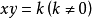 在笛卡尔坐标平面上,两个具有反比例关系的变量的图形是一对双曲线。该图线上的每一点的 X 和 Y 坐标值之积总是等于比例常数 (k)。由于 k非零,所以图线不会与坐标轴相交。