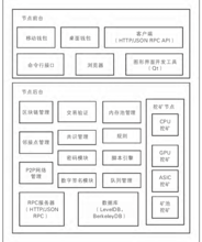 节点程序总体上分为两部分:一部分是前台程序,包括钱包或图形化界面;另一部分是后台程序,包括挖矿、区块链管理、脚本引擎及网络管理等。