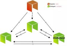 这样,发言人拟定的法律A就可以获得验证,因为(左边与中间)诚实的代表都可以验证由诚实的发言人拟定的法律A,达成66%的共识。代表也可以判断到底是发言人向右边的节点说谎还是右边的节点不诚信。这点现在还不清楚,但公民可以根据相关数据审核各节点是否诚信/正常运作。这些信息有助于投票人判断哪个代表最信得过,继而选择把票投给哪个代表。