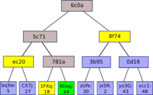 Mekle tree),其中一bucket单位的数据块总是包含了两个相邻的块或哈希。哈希算法允许了一个整齐的机制,我们称之为梅克尔证明(Merkle proofs)。一个梅克尔证明包含了一个数据块,这颗梅克尔树的根哈希,以及包含了所有沿数据块到根路径哈希的“分支”。
