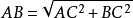 如果直角三角形两直角边分别为A,B,斜边为C,那么 A^2+B^2=C^2;; 即直角三角形两直角边长的平方和等于斜边长的平方。如果三角形的三条边A,B,C满足A^2+B^2=C^2;,还有变形公式: