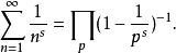 这是ζ函数与素数的联系的朦胧征兆,其证明可以在证明黎曼ζ函数的欧拉乘积公式中看到。通过这条公式,容易证明当