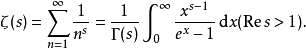 黎曼ζ函数ζ(s)的定义如下: 设一复数s,其实数部分> 1而且: