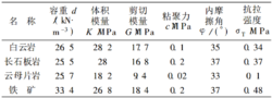 考虑到1988~1991年矿山已经对该区岩石进行过全面的试验,因此本次岩石物理力学性质试验仅针对边坡稳定性计算中所需的不连续面的力学性质进行。试验内容主要包括:单轴抗压强度、岩石变形参数(弹性模量E、泊松比μ)、结构面c、φ值(包括峰值强度和残余强度)。在使用试验数据时,出于安全方面的考虑,在试样处于自然风干和饱水2种状态下的试验中,所选用的岩石强度指标主要是饱水状态下的数值,并以摩擦强度取代残余强度。根据岩芯物理力学性质试验结果进行归纳综合,并与以往的同种岩石试验成果进行比较,参数选取如表1所示。