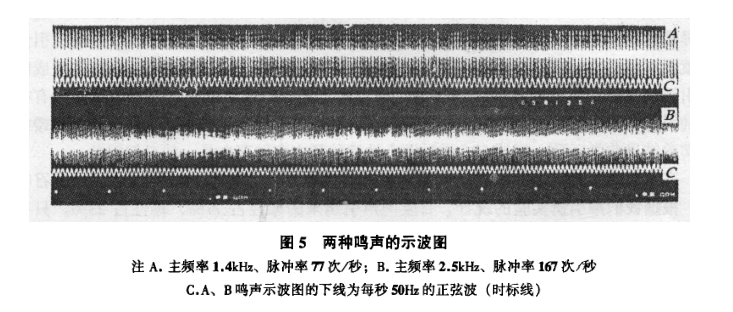在河南生活的蝼蛄鸣声频率为2.5Khz 脉冲率167次/s,而北京蝼蛄的鸣声频率为1.4Khz 脉冲率77次/s。蝼蛄平时发出的响亮鸣声都是召唤鸣声,这种鸣声对雌雄个体都有召唤力。可见,如果河南蝼蛄想去“撩”北京蝼蛄妹,还要好好学北京话呀!