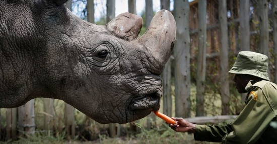 北方白犀牛是世界上最濒危的哺乳动物。今年3月,世界上最后一头雄性北方白犀牛“苏丹”离世,让剩下的两头雌性北方白犀牛Fatu和Najin成为这一物种仅存的成员。