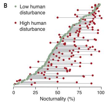 Gaynor et al. 2018. The influence of human disturbance on wildlife nocturnality. Science 360, 1232–1235.