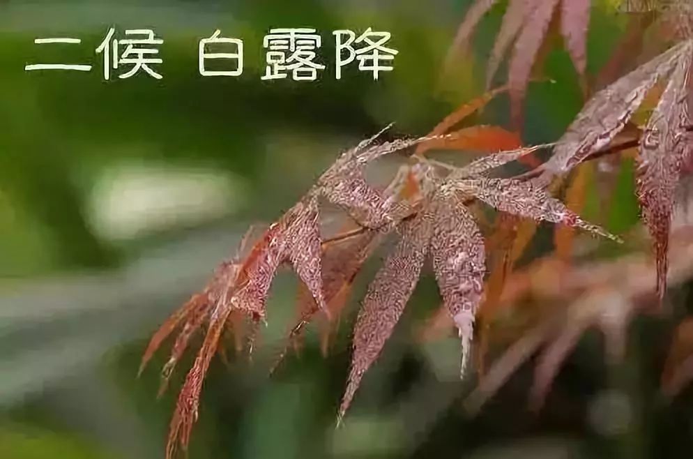 二候白露降:由于昼夜温差加大,室外植物上凝结了露珠,大地上早晨会有雾气产生。