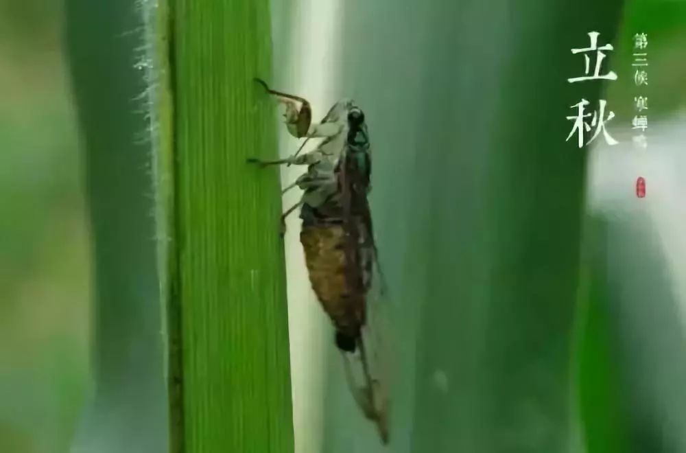 三候寒蝉鸣:此时的寒蝉因秋天的到来感阴而鸣。