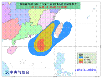 台风“玉兔”大风预报图(图片来源:中央气象台)