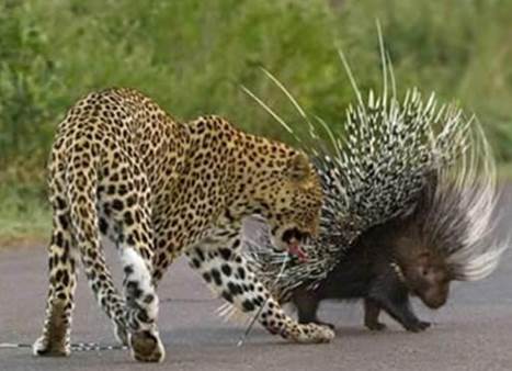 体长只有55—77厘米的豪猪,要是与豹子过起招来,凶悍的花豹也未必是它的对手。