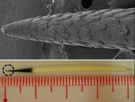 科学家发现,豪猪的棘刺对改进医疗设备具有重要的启示意义。你看,由于豪猪的刺带有倒钩,因此在刺入肌肉时可以省不少的力。同时,这个倒钩可以有效地阻止棘刺的拔出。